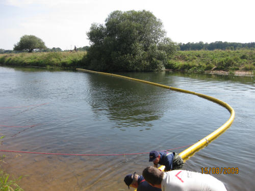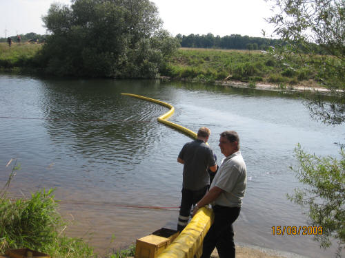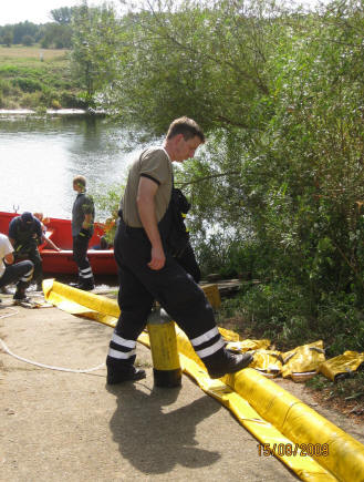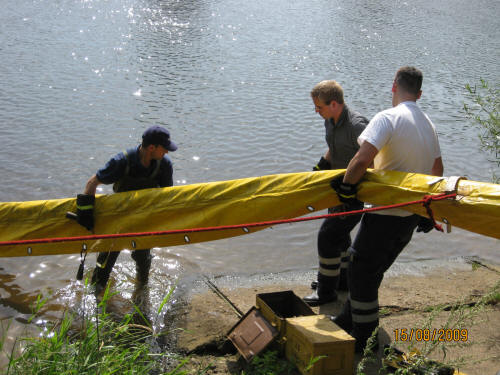 Am vergangenen Samstag den 15.08.2009 brachte die Feuerwehr Schwarmstedt im Rahmen ihres Übungsdienstes „Boote und Ölwehr“ ihre Ölsperre zu Wasser. Eigens hierfür war die Aller in Höhe des Campingplatzes Engehausen durch das Wasser- und Schifffahrtsamt Verden gesperrt worden. Mit zwei Booten und insgesamt 18 Kameraden wurde die insgesamt 60 m lange Ölsperre, welche im Bedarfsfall auf 30 m gekürzt werden könnte, unter den Augen einiger Campingplatzbesucher zu Wasser gebracht und mittels Greifzug über die Aller gezogen.