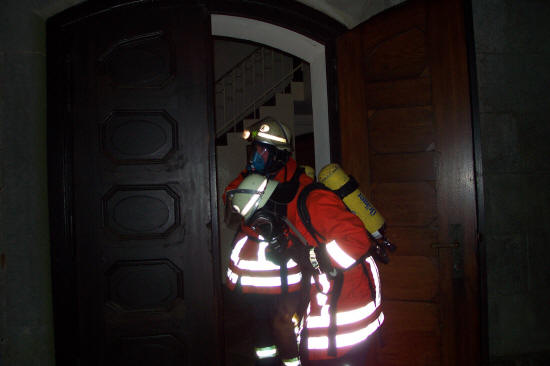 Dorfmark Am Mittwoch gegen 17:50 Uhr wurde die Feuerwehr Dorfmark zu einem Brand in der Stankt Martinskirche alarmiert. Das zuerst eintreffenden Tanklöschfahrzeug stand vor der Situation, dass aus dem dunklen Gotteshaus leichter Rauch austrat. Der Pastor Uwe Gaudszuhn mit seinem Küster Claus Dittmer meldeten hustend dem Gruppenführer, dass sich noch weitere Personen im Gebäude befanden. Der Einsatzleiter ließ darauf hin Alarm für die Wehren Bad Fallingbostel und Riepe geben, da seine eigenen Kräfte für diese Lage nicht ausreichten. Gleich danach befahl er seinen ersten Angriffstrupp über ein Treppenhaus auf die Empore zur Menschenrettung vorzugehen. Erst jetzt gab sich die Übungsleitung um Stadtbrandmeister Uwe Küsel zu erkennen, um die Lage weiter vorzugeben. Die 61 Einsatzkräfte setzten insgesamt 23 Atemschutzgeräteträger zur Rettung von zehn vermissten Personen aus der völlig zugenebelten Kirche ein. Die Sicht für die Brandschützer in der Kirche betrug etwa 30 cm. Nach 35 Minuten hatten die Einsatzkräfte die letzten Verletztendarsteller gerettet. Im Anschluß nach der Übung zeigten sich der Stellvertretende Abschnitsleiter Hartmut Staschinski und Stadtbrandmeister Uwe Küsel zufrieden mit der Leistung der Stadtfeuerwehr Bad Fallingbostel.