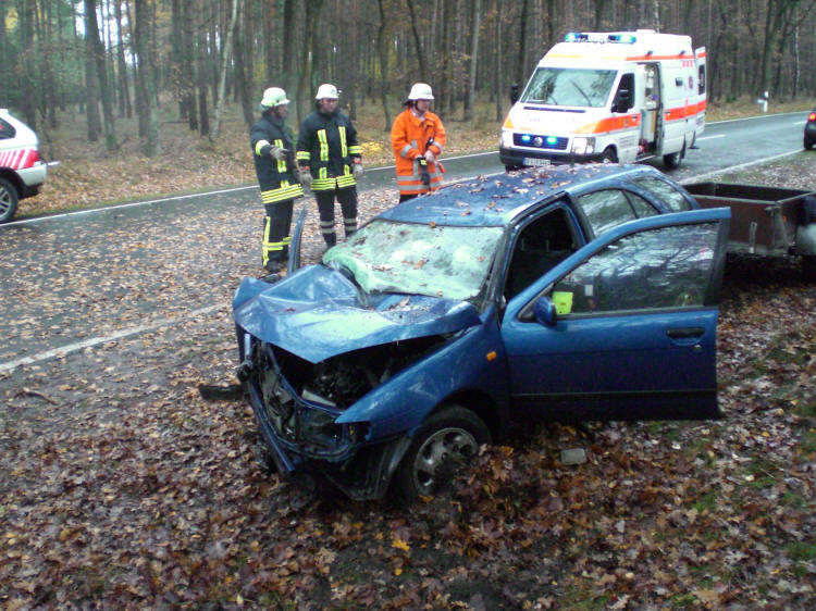 Südkampen (jf) Die Freiwilligen Feuerwehren Südkampen und Walsrode wurden am Samstag gegen 14:00 Uhr zu einem schweren Verkehrsunfall alarmiert. Aus bisher unbekannter Ursache kam ein PKW mit Anhänger kurz vor dem Ortseingang Südkampen von der Fahrbahn ab und prallte gegen einen Baum. Der Fahrzeugführer aus dem Landkreis Verden wurde dabei in seinem Fahrzeug eingeklemmt. Nach seiner Befreiung wurde er an den Rettungsdienst übergeben.