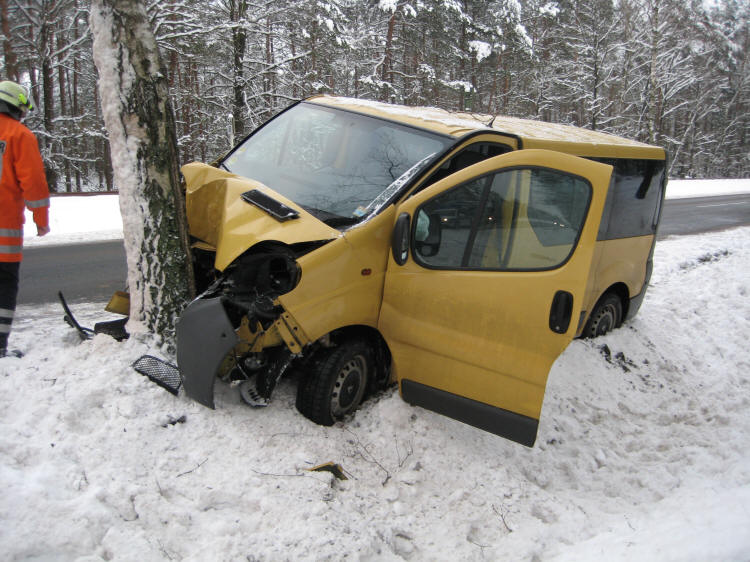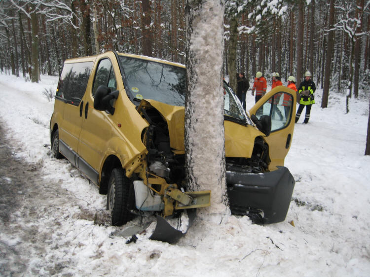 Frontal am Baum endete dieser Unfall nach einem Überholvorgang. Auf winterlicher Strasse war die Fahrerin des Renault Traffic in Fahrtrichtung Walsrode unterwegs, als sie zwischen dem Bahnhof Düshorn und MunDepot Beetenbrück ein Fahrzeug überholen wollte. Dabei kam sie von der Straße ab und prallte gegen einen Strassenbaum. Bereits kurz nach dem Ausrücken der ersten Einsatzkräfte folgte vom Rettungsdienst die Lagemeldung" Person nicht eingeklemmt", so dass die Feuerwehr Düshorn an der Einsatzstelle nicht mehr eingreifen brauchte und diese nach wenigen Minuten wieder verlassen konnte. Die ebenfalls mitalarmierte Feuerwehr Walsrode konnte die Einsatzfahrt abbrechen