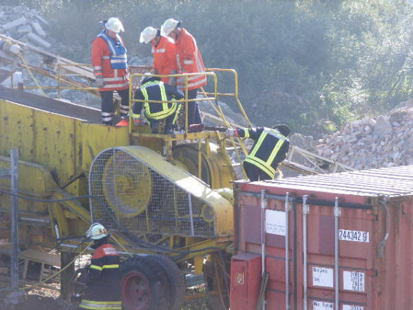 Der Fachzug Technische Hilfeleistung hatte eine Person unter einem Container zu bergen und einen in einer Kies-Geröll-Lawine verschütteten PKW freizulegen und parallel dazu einen großen Radlader gegen Abrutschen zu sichern. Hierbei konnte auch das Spezialwissen und Geräte des THW genutzt werden, die ebenfalls zu diesem Zug gehören. Außerdem wurde eine Person aus einem Schredder gerettet.