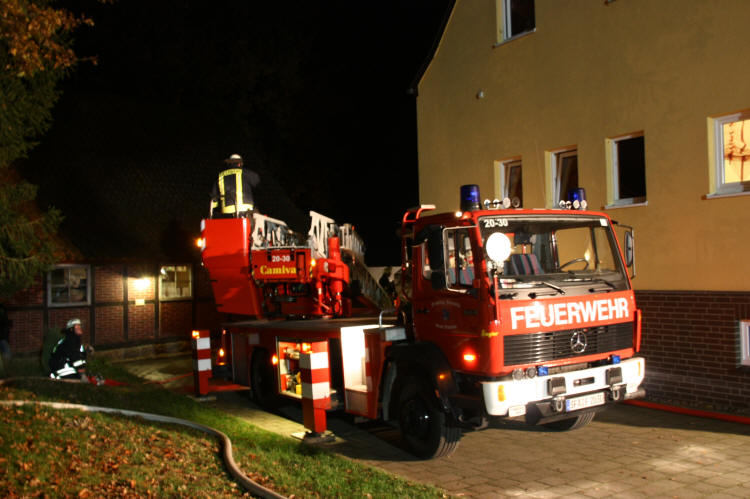 Als am Montag den 01. November um 18:42 Uhr die Sirenen in Honerdingen heulten und die Funkmeldeempfänger mit der Durchsage „Brandmeldeanlage Sanssouci“ auslösten, konnte keiner der freiwilligen Feuerwehleute ahnen, welche große „Einsatzlage“ auf sie wartete. Die Übung sah vor, dass es bei Arbeiten im Keller des Hotels „Sanssouci“ in Tietlingen zu einer Verpuffung mit Brand gekommen war. Acht Personen wurden im Gebäude vermisst, vier weitere Personen hatten sich selbst auf eine Rettungsplattform im 2. Obergeschoss retten können. Dem Einsatzleiter Michael Schlüter wurde schnell klar, dass weitere Unterstützung erforderlich war. So wurden die Ortsfeuerwehren Bad Fallingbostel und Walsrode nachgefordert. Zeitgleich wurde der erste Atemschutztrupp in den Keller zur Personensuche geschickt. Bei Eintreffen der nachrückenden Kräfte wurde unter der Leitung vom stellvertretenden Ortsbrandmeister Michael Schlüter vier Abschnitte (Menschenrettung West und Ost, Verletztensammelstelle und Abriegelung) gebildet. Mit weiteren Atemschutzgeräteträgern wurde die Personensuche im Gebäude intensiviert. Durch die Walsroder Drehleiter wurden die vier Personen aus dem 2. Obergeschoss in Sicherheit gebracht. Anschließend wurde die Drehleiter zur Abriegelung des Nachbargebäudes eingesetzt, um ein Übergreifen der Flammen zu vermeiden. Da das Hydrantennetz in Tietlingen für so eine Einsatzlage nicht ausreichte, wurde eine Wasserentnahmestelle an einem nahegelegenen Fischteich aufgebaut. Nach gut einer Stunde waren die Übungsziele erreicht. Sämtliche Personen wurden gerettet und an der Verletztensammelstelle betreut. Das Feuer im Keller war gelöscht und Lüftungsmaßnahmen wurden durchgeführt. Von der Einsatzübung machten sich der Abschnittsleiter Burkhard Schmale, Stadtbrandmeister Walsrode Richard Meyer, sowie seine Stellvertreter Volker Langrehr und Gerold Bergmann und der Bad Fallingbosteler Stadtbrandmeister Uwe Küsel ein Bild. Der Honerdinger Ortsbrandmeister Andreas Bergmann, der die Übung ausgearbeitet hatte, bedankte sich bei den Ehrenamtlichen für die gezeigte Einsatzbereitschaft.