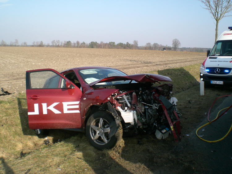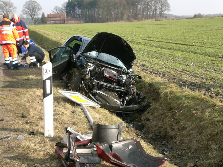 Laut Aussage der Polizei Walsrode übersah ein 55-jähriger Walsroder beim Abbiegen die Vorfahrt eines entgegenkommenden 22-jährigen Golffahrers aus Kettenburg. Bei dem Frontalzusammenstoß wurde der Golffahrer in seinem Fahrzeug eingeklemmt und musste von den Kräften der Feuerwehr mittels hydraulischem Rettungsgerät befreit werden. Der Walsroder und seine 11-jährige Tochter wurden leicht, der 22-jährige schwer verletzt. Die Feuerwehren waren mit sechs Fahrzeugen und 37 Helfern vor Ort. Außerdem waren zwei Rettungswagen, der Notarzt und zwei Streifenwagen der Polizei an der Einsatzstelle.