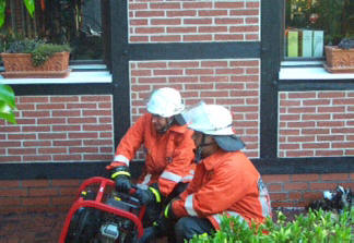 Durch einen Knall wurden am Sonntag gegen 05:00 Uhr die Bewohner eines Mehrfamilienhauses in Mengebostel geweckt. Bei der Suche nach der Ursache des Lärms stellten sie einen Zimmerbrand im Büro fest. Ein Bewohner riss sofort die brennende Gardine von der Wand und beförderte diese mit weiteren brennenden Papieren aus dem Haus. Hierbei erlitt der Anwohner Brandverletzungen an den Händen, so dass er in das Heidekreisklinikum eingeliefert werden musste. Die alarmierte Feuerwehr Dorfmark traff kurz danach mit 21 Einsatzkräften ein und löschte den Brand mit 10 Litern Wasser. Danach wurde das Gebäude mit einem Hochleistungslüfter belüftet. Es entstand erheblicher Sachschaden durch Raucheinwirkung.