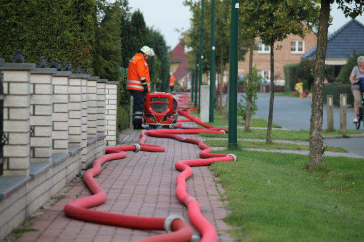 Weitere angenommene Lage war der Zusammenbruch des Hydrantennetzes durch einen Rohrbruch, welche die Wasserversorgung über lange Wegstrecke aus einem benachbarten Kiessee nötig machte. Hierfür mussten Schlauchleitungen mit einer Gesamtlänge von ca. 1,2 Km ausgelegt werden.