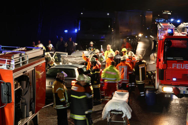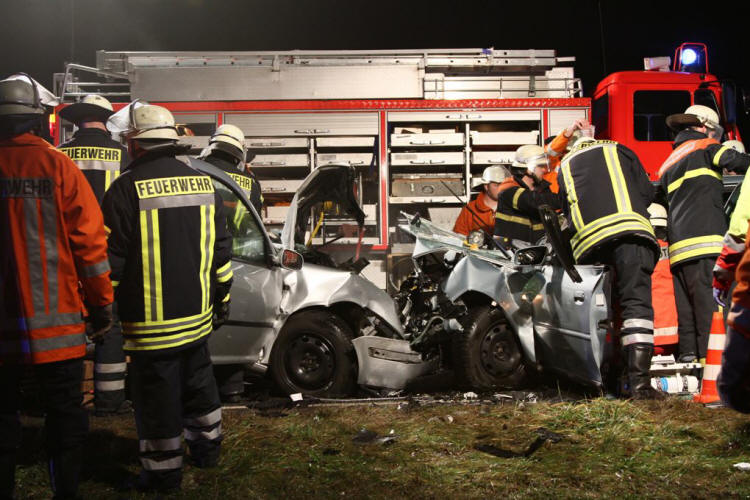 Der 83jährige Fahrer eines Audi aus Ritterhude war aus ungeklärter Ursache in einer leichten Rechtskurve in den Gegenverkehr geraten und dort mit einem entgegenkommenden VW Golf frontal zusammengestoßen. Der 83jährige und die 51jährige Fahrerin des Golf aus Munster wurden in ihren Fahrzeugen eingeklemmt. Sie wurden von den Feuerwehren Munster und Soltau mit schwerem Rettungsgerät befreit und gleichzeitig von mehreren Ärzten und Rettungsassistenten erstversorgt. Zwei weitere Insassen des Golf wurden teilweise schwer verletzt. Ein Lkw-Fahrer hinter dem Golf erkannte die Situation rechtzeitig und konnte glücklicherweise noch bremsen.