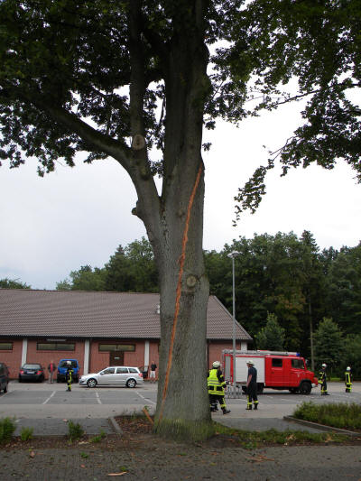 Die ca. 25 Meter hohe Eiche mit einem Stammdurchmesser von einem Meter überstieg allerdings die Möglichkeiten der Feuerwehr und so wurde die Ortsgruppe Fallingbostel/Walsrode des Technischen Hilfswerkes (THW) alarmiert.
