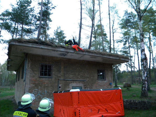 Einen nicht ganz alltäglichen Dienst erlebten die Teilnehmer des Dienstes “Technische Hilfeleistung und Gefahrgut“ am 26.04.2012. Auf dem Dienstplan stand das Thema “Retten aus Tiefen und Höhen“. Nach dem Treffen auf der Feuerwache führte der Weg in das Eibiagelände. Dort hatte Andree Lindhorst für die Kameraden zwei Übungsszenarien vorbereitet.
