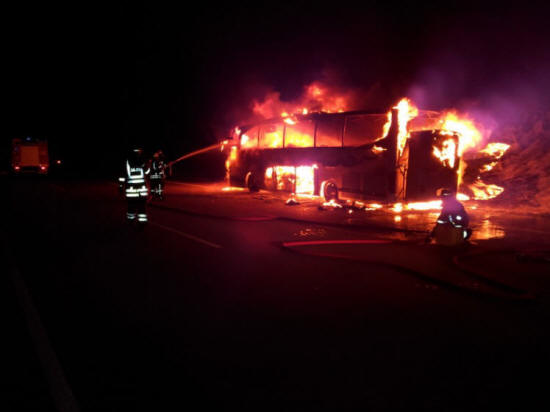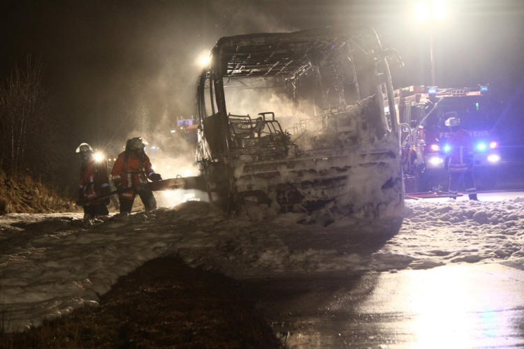 Reisebus ausgebrannt Schülergruppe auf Rückweg aus dem Allgäu