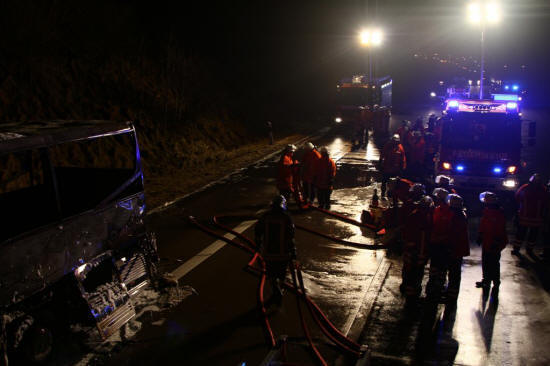 Ein Riesebus brannte am frühen Morgen des 25.02. auf der Autobahn 7 zwischen Bispingen und Evendorf vollständig aus. Acht der insgesamt 45 Insassen wurden mit leichten Verletzungen in Krankenhäuser eingeliefert.