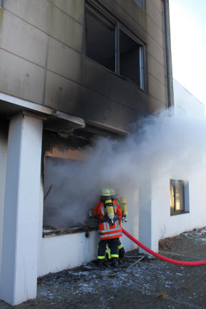 Nach knapp 1,5 Stunden war das Feuer gelöscht und die Nachlöscharbeiten begannen. Um alle Glutnester zu ersticken wurden die von den Flammen zerstörten Räume mit Schaum geflutet.