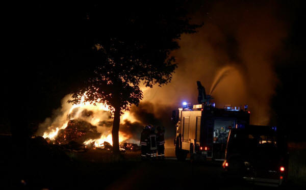 (stm). In der Nacht zu Sonntag brannten etwa 90 Rechteckballen Stroh in Wietzendorf. Sie waren abgedeckt am Feldrand in Richtung Klein Amerika gelagert. Bei Eintreffen der Feuerwehr brannten sie in voller Ausdehnung. Die Hitzeentwicklung war so stark, dass Gras auf der anderen Straßenseite ebenfalls bereits brannte, ebenso ein Straßenbaum.
