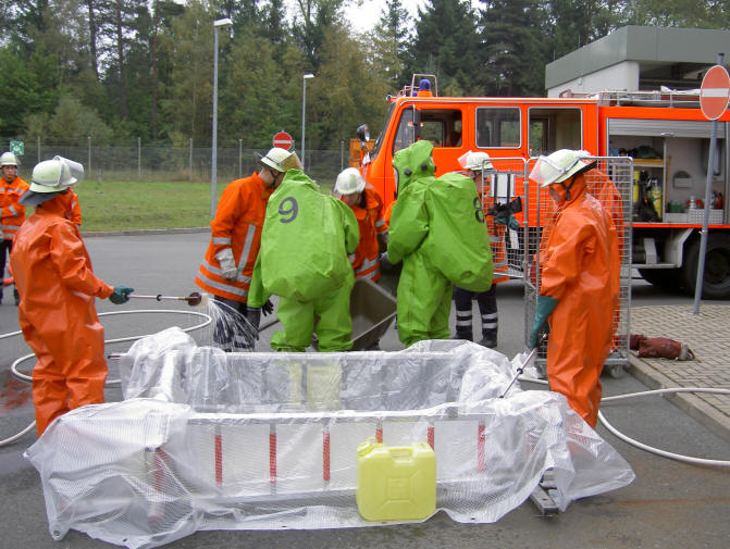 Zur Bewältigung der verschiedenen Szenarien müssen zahlreiche Atemschutzgeräte und Chemikalien-Schutz-Anzüge der Werkfeuerwehr und der Feuerwehr Munster mit den zugehörigen Dekontaminations-Stationen eingesetzt werden. Des weiteren wurde die Brandbekämpfung mit Wasser und Schaummittel durchgeführt.