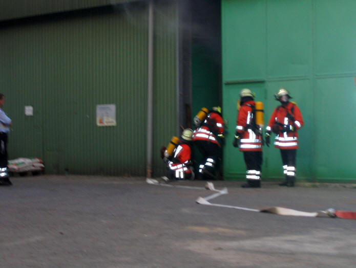 Zwei weitere Jugendliche waren in eine Lagerhalle eingedrungen und hatten durch Unachtsamkeit eine Zigarette in das dort gelagerte Korn fallen lassen. Durch ein Gemisch aus Sauerstoff und dem dort getrockneten Korn kam es zu einer Verpuffung gekommen, die letztlich danach zu einer Durchzündung führte. Beide Jugendliche wurden vermisst. Wegen der Brandausbreitung war die gesamte Halle in Gefahr. Durch den zusätzlich aufkommenden Wind entfachte sich eine neben der Lagerhalle befindliche Tankstelle stehender offener Eimer mit Benzin, so dass es zu einem Knall kam und die Tankstelle in Flammen stand.
