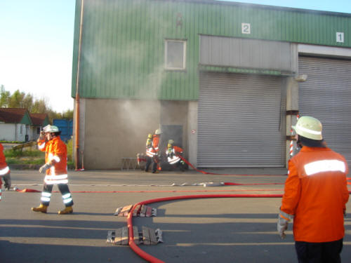 Alle an die Einsatzkräfte gestellten Aufgaben wurden nach Einschätzung von Einsatzleiter Andre Bargmann schnell und erfolgreich bewältigt. Er erinnerte in einer kurzen Ansprache daran, dass die Ortsfeuerwehr Heber im Jahr 2006 zu einem ähnlichen Realeinsatz nach Hillern gerufen wurde, bei dem ein Radlader in der Sortierhalle „Grüner Punkt“ in Brand geraten war. Nur durch einen schnellen und gezielten Schaumangriff konnte seiner Zeit ein größeres Feuer verhindert werden.