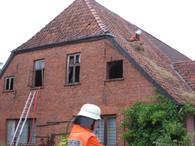 LK Soltau-Fallingbostel (jf) Gegen 16.00 Uhr zog langsam das Gewitter in den Raum Rethem. Durch Blitzeinschlag kam es in Altenwahlingen zu einem Flächenbrand, den es zu löschen galt. Kurz danach hatten die Feuerwehren der Samtgemeinde Rethem dann reichlich Arbeit durch den Starkregen. Während es in Walsrode noch nahezu trocken war, goss es dort wie aus Kübeln und führte zu vollgelaufenen Kellern und überfluteten Straßen, die teilweise 30cm unter Wasser standen. Die Feuerwehren der Samtgemeinde und das DLRG waren bis nach Mitternacht im Dauereinsatz, um zu helfen. Gegen 17.30 Uhr kam es dann in Groß Eilstorf, vermutlich durch Blitzeinschlag, zu einem Gebäudebrand auf einem landwirtschaftlichen Anwesen. Die Ortswehren Groß Eilstorf, Kirchboitzen und Südkampen waren mit rund 40 Kräften vor Ort. Unter Atemschutz wurde der Brand erfolgreich bekämpft, dabei musste Schweißtreibend das Heu vom Dachboden geschaufelt und am Boden abgelöscht werden. Es entstanden rund 10 000 Euro Schaden. Zeitgleich wurde in Vethem eine Kuh, die mit vier anderen Tieren unter einem Baum stand, vom Blitz getroffen und getötet. Gegen 21.00 Uhr hieß es dann in weiten Bereichen des Landkreises „Land unter“. Die Einsatzschwerpunkte lagen hier im Raum Schneverdingen, Walsrode und Rethem, aber auch Eilte, Grethem-Büchten und Munster mussten zu Unwettereinsätzen ausrücken. Es waren mehr als 70 Einsätze zu erledigen, meist handelte es sich um vollgelaufene Keller und Ställe sowie über- oder unterspülte Strassen, die teilweise gesperrt werden mussten. Neben den Feuerwehren waren auch das THW, die Stadtwerke, der Bauhof der Stadt Walsrode sowie Polizei im Einsatz.