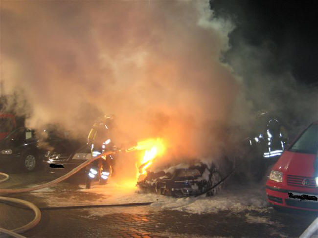 LK Soltau-Fallingbostel (jf) Gegen 3.00 Uhr rückten in Bad Fallingbostel insgesamt 32 Freiwillige mit sechs Fahrzeugen in die Straße „Kampgarten“ aus. Dort war aus bisher unbekannter Ursache in der Erdgeschosswohnung eines Vier-Parteienhauses ein Feuer ausgebrochen. Die insgesamt fünf Bewohner konnten bereits vor dem Eintreffen der Helfer das Gebäude verlassen, der Inhaber der Brandwohnung kam allerdings mit dem Verdacht auf eine Rauchgasvergiftung ins Krankenhaus. Ebenfalls verletzte sich ein Feuerwehrmann am Fuß, als er in der Dunkelheit an einem Bordstein umknickte. Auch er musste behandelt werden. Die Drehleiter aus Walsrode wurde zusätzlich alarmiert, um das Dach zu öffnen und so gezielter nach Brandnestern suchen zu können. Es entstand ein Schaden von Rund 80 000 Euro, die Wohnung ist unbewohnbar. Ebenfalls waren die Polizei, der Rettungsdienst, der Stadtbrandmeister Bad Fallingbostel und der Brandschutzprüfer des Landkreises vor Ort. Parallel dazu liefen auch in Walsrode die Löscharbeiten. Dort waren insgesamt 13 Feuerwehrleute mit drei Fahrzeugen zu einem Autohaus im Gewerbegebiet ausgerückt, weil ein PKW in Vollbrand stand. Unter Atemschutz wurde der Brand mit Schaum gelöscht. Die Ursache ist auch hier ungeklärt, am Fahrzeug entstand ein Totalschaden.