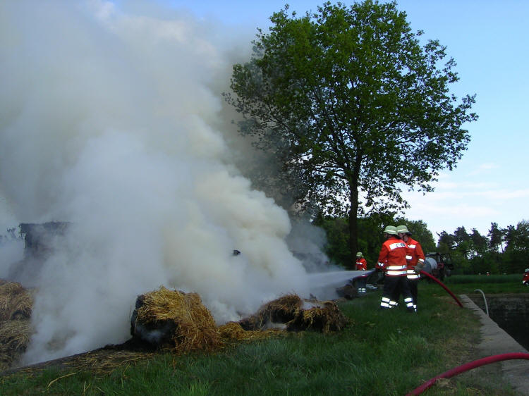 120 Strohballen verbrannt Drei Feuerwehren im Einsatz