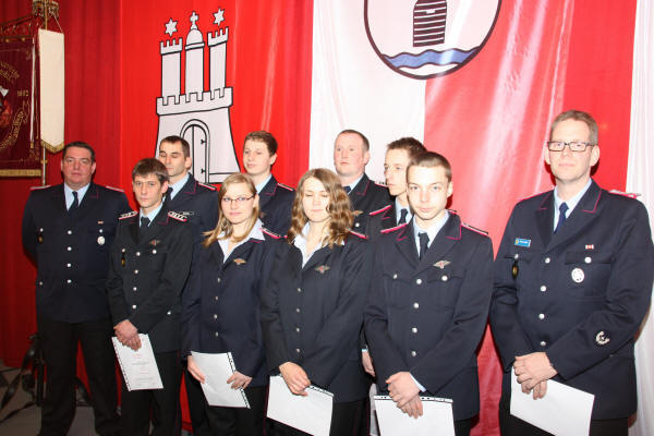 Zu Feuerwehrmännern oder -frauen wurden Denise Kleinhans, Georgina Cawton, Tobias Meinke, Marcel Cawton, Mike Marcel Bossel und Bastian Peters ernannt. Zudem wurden Andrea Stendel zur Ersten Hauptfeuerwehrfrau und Carsten Wedemyer zum Ersten Hauptfeuerwehrmann, Sven Ahlgrim zum Oberlöschmeister und Thomas Tödter zum Hauptbrandmeister befördert.