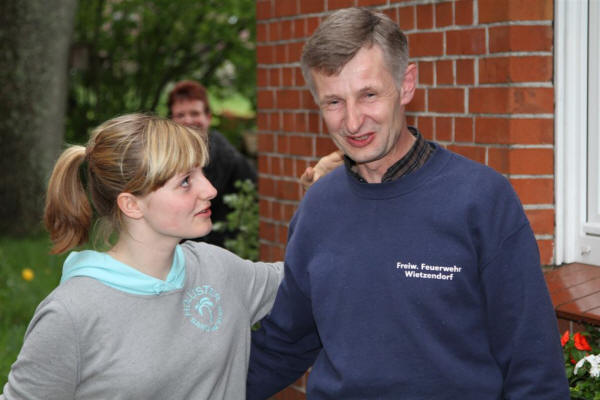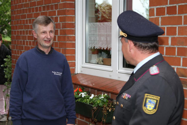 Alle waren eingeweiht: Ehefrau, Tochter, Kreisbrandmeister, Abschnittsleiter, Mitglieder der TEL und seine Wietzendorfer Feuerwehr-Kameraden. Eigentlich wollte er dort als neuer Gemeindebrandmeister am Dienst teilnehmen. Und alle hielten dicht. „Susi“ von Alm sorgte mit diversen „Aufträgen“ dafür, dass ihr Mann auch zu Hause ist, bis die Kolonne der Feuerwehr-Fahrzeuge mit Blaulicht auf dem Hof stand.