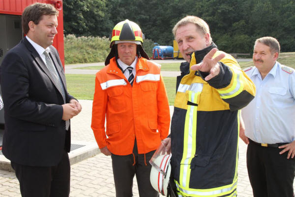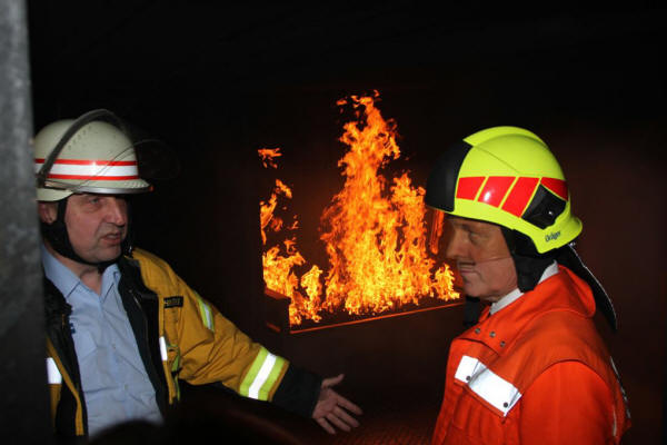 Dort trafen Sie auf den Landrat Manfred Ostermann, Führungskräfte der Kreisfeuerwehr sowie die Stadt- und Gemeindebrandmeister des Heidekreises und dem Landkreis Rotenburg/Wümme. Ziel der Veranstaltung war es, sich über die Herausforderungen des ehrenamtlichen Engagements in den Feuerwehren auszutauschen und zu erfahren, „wo der Schuh drückt“. Es ging dabei um die Anerkennung des Ehrenamtes, die Freistellung zu Ausbildung und Einsätzen, die Ausstattung von Feuerwehren die an Bundesautobahnen liegen und wo die Kommunen keinerlei finanzielle Unterstützung für die Unterhaltung der Feuerwehren vom Bund bekommen. Es wurde aber auch kritisch hinterfragt, ob es nicht Möglichkeiten gäbe, finanzielle Anreize wie bspw. Rentenanwartschaften zu bieten, um Bürger zum Dienst in der Feuerwehr zu bewegen bzw. die Aktiven langfristig zu motivieren, für die Kommunen ehrenamtlich tätig zu sein. Speziell gefordert wurde auch, dass öffentliche Arbeitgeber bei gleicher Eignung bevorzugt Mitglieder von Feuerwehren einstellen sollten und damit den privaten Arbeitgebern als Vorbild dienen – da ist heute oft das Gegenteil der Fall. Danach ließen sich die Politiker noch die Brandsimulationsanlage zeigen.
