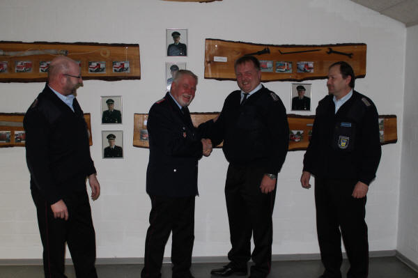 Zur Erinnerung bekam Grenzdörfer von der Kreisfeuerwehr einen Humpen mit Gravur überreicht, der ihn immer an sein umfangreiches ehrenamtliches Engagement erinnern wird.