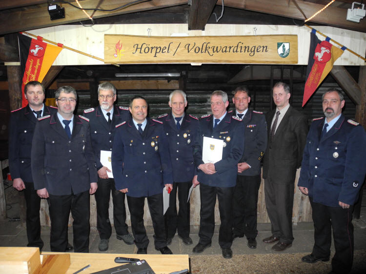 Beim Jubiläum der Jugendfeuerwehr Hörpel-Volkwardingen stand der Rückblick auf eine 40-jährige aktive Jugendarbeit in den Feuerwehren Hörpel und Volkwardingen im Mittelpunkt. In vier Abschnitten berichteten Hans-Jürgen Volkmann, Sarah Stelter, Torsten Witthöft und Mathias Arndt von der Anfangszeit bis heute. Die Jugendfeuerwehr hat im Laufe ihres Bestehens an vielen Wettbewerben und Veranstaltungen teilgenommen, es wurden viele Pokale und Preise errungen. Durch die Bilder und plastischen Schilderungen wurden im Laufe des Abends viele Erinnerungen aufgefrischt. Karsten Mahler als Vertreter des Heidekreises ehrte von den ersten Jugendfeuerwehrmitgliedern die jetzt noch aktiven Feuerwehrmitglieder Uwe Stelter, Hans-Jürgen Volkmann, Martin Hankemeyer und Peter Krüger für 40jährigen aktiven Dienste im Feuerlöschwesen. Bürgermeisterin Sabine Schlüter, Kreisjugendfeuerwehrwart Jörg Freitag, Gemeindebrandmeister Jürgen Stelter und die beiden Ortsbrandmeister Dirk Stelter und Rolf Arndt betonten übereinstimmend, wie wichtig und sinnvoll Jugendarbeit ist. Außerdem wiesen sie auf die Vorbereitung für den aktiven Feuerwehrdienst in den Ortswehren hin. Mathias Arndt erhielt aus den Händen von Kreisjugendfeuerwehrwart Jörg Freitag die Ehrennadel der Niedersächsischen Jugendfeuerwehr. Der Kommersabend klang mit einem gemütlichen Beisammensein aus.