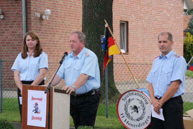 Richard Meyer, Silke Lorenz und Jörg Freitag dankten den Verantwortlichen für die Motivation eine Nachwuchsgruppe ins Leben zu rufen und sagten, wann immer nötig und möglich, ihre Unterstützung zu. Hartmut Mindermann sah in der Gründung ein Zeichen dafür das „Honerdingen lebt“ und Pastor Delventhal stellte sie Nachwuchsbrandschützer unter Gottes Segen.