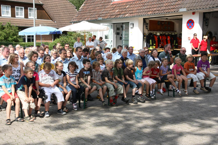 Es waren auch viele Gäste erschienen, darunter der Abschnittsleiter Hartmut Staschinski, der Stadtbrandmeister Richard Meyer, der Kreisjugendfeuerwehrwart Jörg Freitag, die Stadtjugendfeuerwehrwartin Tina Krause, die Bürgermeisterin Silke Lorenz, der Ortsvorsteher Hartmut Mindermann sowie Angehörige der Kinder und interessierte Honerdinger Bewohner.