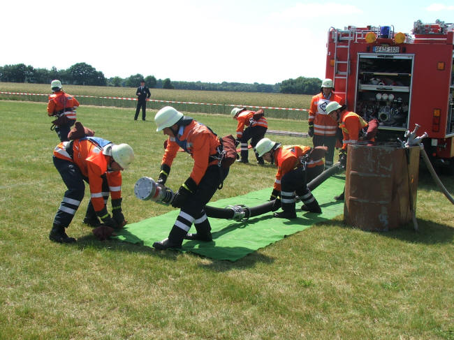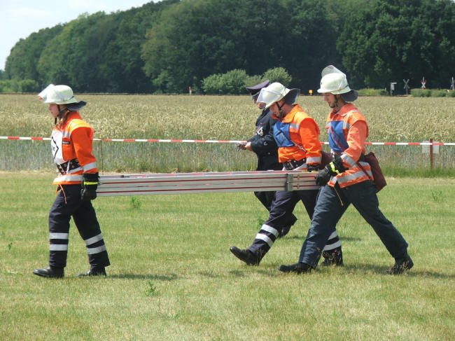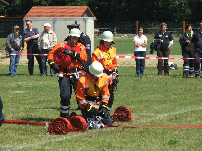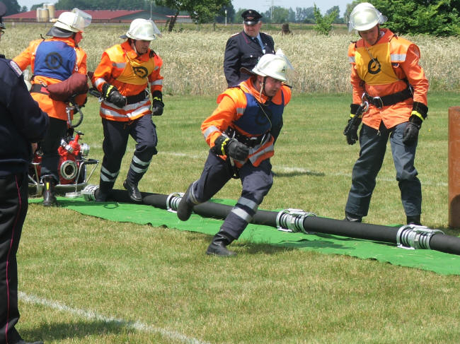 Geschicklichkeit und technisches Wissen waren kürzlich wieder gefragt bei den 26. Leistungswettbewerben der Feuerwehren der Samtgemeinde Schwarmstedt. Insgesamt stellten sich in diesem Jahr in Essel 12 Gruppen den wachen Augen der Wertungsrichter. Die Aufgabe der Mannschaften bestand darin, innerhalb von zehn Minuten einen Löschangriff aufzubauen und dabei möglichst wenig Fehlerpunkte zu kassieren. Bei den in die Übung eingebauten Zeittakten war besonders die Schnelligkeit gefragt. Gruppenführer, Melder, Maschinist und Angriffstrupp mussten zusätzlich ihr feuerwehrtechnisches Wissen in einer Sonderprüfung unter Beweis stellen. Auch der Pflegezustand des Feuerwehrfahrzeuges und der Gesamteindruck der Wettbewerbsgruppe wurden bewertet. Bei sommerlichen Temperaturen konnten die zahlreichen Zuschauer einen spannenden Wettkampf verfolgen. Nachdem alle Ergebnisse ausgewertet wurden, konnte Gemeindebrandmeister Rainer Priebe den Sieger bekannt geben. Den ersten Platz sicherte sich die Mannschaft Norddrebber 1 mit 397,0 Punkten vor Norddrebber 2 mit 365,85 Punkten. Dritter wurde die Gruppe aus Buchholz (359,71 Punkten).Auf den weiteren Plätzen folgten 4. Bothmer (334,43), 5. Schwarmstedt (330,71), 6. Lindwedel 2 (329,57), 7. Hope (326,43), 8. Essel (262,43), 9. Gilten (245,0), 10. Marklendorf (235,86), 11. Suderbruch (223,14) und 12. Lindwedel 1 (199,71).