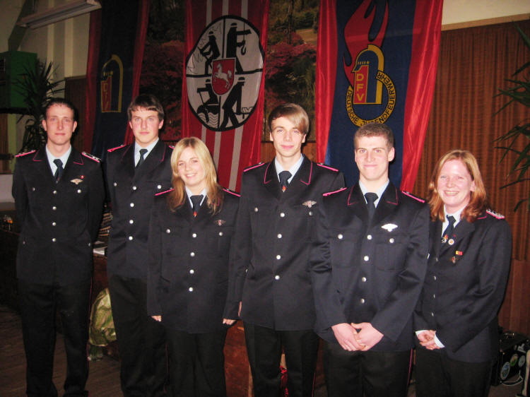 Krelingen (jf) Zahlreiche Aktive, Fördernde Mitglieder und Gäste von Politik, der Kreisfeuerwehrführung und benachbarter Ortswehren waren der Einladung des Ortsbrandmeisters Holger Krause zur Jahreshauptversammlung gefolgt. Die 48 Aktiven, denen zwei Einsatzfahrzeuge zur Verfügung stehen, mussten im vergangenen Jahr zu drei Brand- und sieben Hilfeleistungseinsätzen ausrücken. Besonders zu erwähnen waren der umgestürzte Tanklastzug im Walsroder Dreieck am 03. Januar sowie der Brand der ehemaligen Discothek Allerlei in Düshorn am 05. Januar. Um auf den Ernstfall vorbereitet zu sein, wurden 32 Dienste und weitere Übungen durchgeführt, darunter auch eine gemeinsame Ausbildungsveranstaltung mit den Walsroder Helfern zum Thema "Patientengerechte Rettung aus verunfallten Fahrzeugen". Bei den Stadtwettbewerben belegte man den achten Platz, bei den Kreiswettbewerben den siebten Platz. Die Jugendfeuerwehrwartin Tina Mindermann ging in ihrem Rückblick auf die 43 Dienste ein, die von den zwei Mädchen und 10 Jungen in 2008 absolviert wurden. Die Jugendlichen nahmen unter anderem an Orientierungsmärschen, der Dieter Schwarze Plakette und an einem Zeltlager in Rinteln teil, bei dem Meike Ahrens, Florian Walde, Holger Walde und Felix Huwer die Leistungsspange als höchste Auszeichnung der Deutschen Jugendfeuerwehr erlangen konnten. In die aktive Wehr wurden übernommen: Meike Ahrens, Friedmar Wehrs, Florian Walde und Andre Meineke. Wolfgang Huwer als Leiter der Kapelle ging auf die 35 Auftritte und dutzenden Übungsabende ein, die die 16 Musiker und acht Auszubildenden im vergangenen Jahr absolvierten. Adolf Plesse wurde zum Ersten Hauptfeuerwehrmann befördert, Torsten Söhnholz wurde im Rahmen seiner Tätigkeit als Ausbilder der Kreisfeuerwehr bereits vor kurzem zum Löschmeister befördert. Der Stellvertretende Bürgermeister Heitmann dankte allen Helfern für das ehrenamtliche Engagement und den Idealismus, den jedes Mitglied an den Tag legt um den Mitbürgern in Not Hilfe zu leisten.