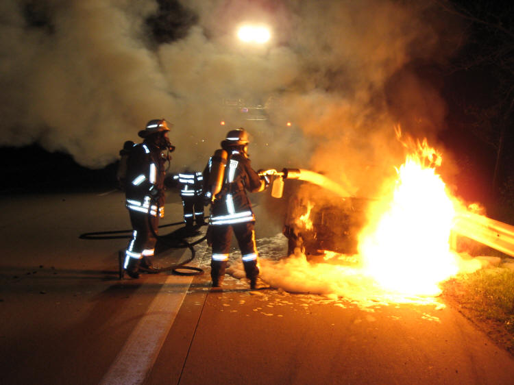 (jf) Am Dienstagmorgen gegen 0:30 Uhr wurde die Freiwillige Feuerwehr Walsrode zu einem PKW-Brand auf die A27 alarmiert. Zwischen Walsrode und Verden brannte ein PKW in voller Ausdehnung. Wie der Fahrer des Opel Corsa erklärte, war er auf einen Trailer aufgefahren. Glücklicherweise blieb er dabei unverletzt, sein Fahrzeug aber ging auf dem Standstreifen in Flammen auf. Die Feuerwehr, die mit drei Fahrzeugen und 18 Einsatzkräften vor Ort war, löschte die Flammen mittels Schaum unter Atemschutz ab. Während der Arbeiten war die Autobahn in Fahrtrichtung Bremen teilweise komplett gesperrt.