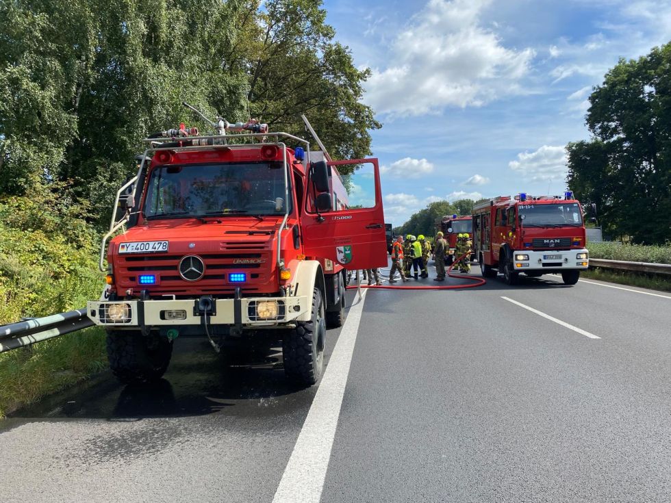 Als die ersten Einsatzkräfte wenig später eintrafen, hatten sie unerwartet Hilfe bekommen. Kräfte der Bundeswehr, welche gerade über die Autobahn 27 verlegten, kamen auf den brennenden Mercedes zu und führten mit ihrem mitgeführten Tanklöschfahrzeug erste Löschmaßnahmen aus. Für die örtliche Feuerwehr blieben so noch Nachlöscharbeiten zu erledigen.