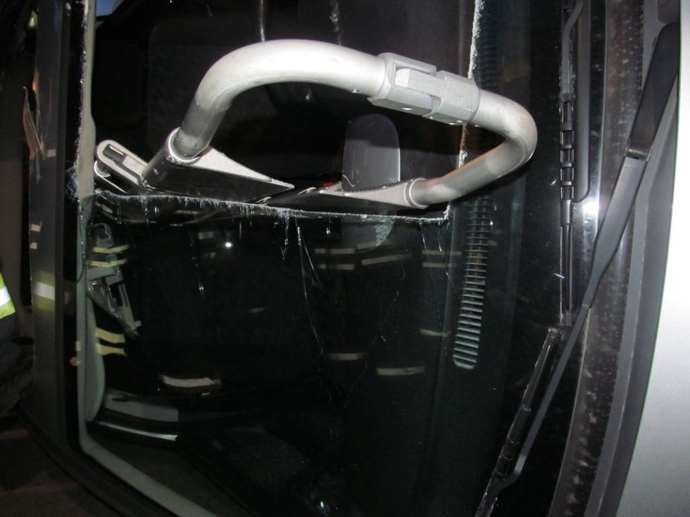 Getestet wurde auch die Säbelsäge, mit der bspw. die Frontscheibe, das Dach sowie der Unterboden aufgeschnitten werden sollte, um Zugänge zum Verunglückten zu schaffen. Beim Unterboden brach allerdings das Sägeblatt ab, so dass diese Lösung nur im absoluten Ausnahmefall eingesetzt werden würde, wenn es keinen anderen Weg gäbe, die Rettung durchzuführen.