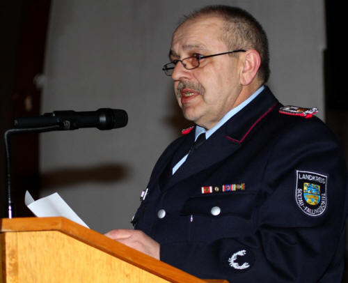(jf) Am Freitag eröffnete der Kreisbrandmeister und Vorsitzende des Kreisfeuerwehrverbandes Uwe Quante um 19.30 Uhr die jährliche Dienstversammlung und begrüßte zahlreiche Stadt-, Gemeinde- und Ortsbrandmeister sowie Funktionsträger der Kreisfeuerwehr, den Landrat Manfred Ostermann, Bürgermeister und Politiker aus dem gesamten Landkreis SFA, Vertreter weiterer Behörden und Verbände sowie Feuerwehrvertreter der Nachbarlandkreise und den Regierungsbrandmeister Peter Adler. Der Bürgermeister Fritz-Ulrich Kasch aus Schneverdingen dankte auch im Namen seiner Amtskollegen den Aktiven der Feuerwehr für das ehrenamtliche Engagement und äußerte sein Unverständnis über das seit Jahren andauernde Gerichtsverfahren zu einem Gefahrguteinsatz auf der A7, wo der Versicherer sich bis heute weigert, alle eingesetzten Chemieschutzanzüge zu ersetzten.