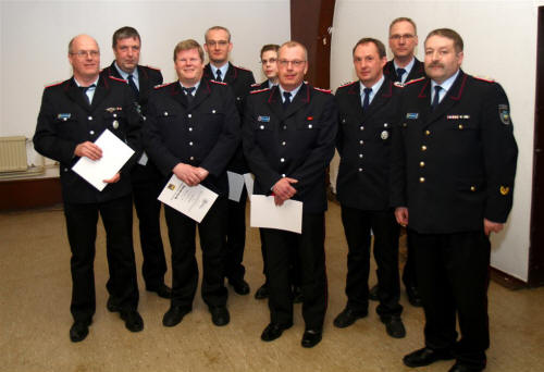 Dirk Stratmann und Jan-Eric Schlüter wurden zum Zugführer bzw. Stellvertretenden Zugführer in der Kreisfeuerwehrbereitschaft ernannt. Als Fachbereichsleiter wurden in der TEL „Böhme“ ernannt: Hans-Peter Müller, Dirk Altmann, Stephan Meier, Torsten Wolter, Carsten Renk und in der TEL „Aller“ Silke Fricke, Volker Langrehr und Jens Führer. Carsten Renk kann ab sofort als S3 in der TEL die Schulterklappen des Brandmeisters tragen. Uwe Meyer und Manfred Rademacher wurden als Stellvertretende Leiter der TEL Böhme zum Oberbrandmeister befördert. Als Kreisausbilder wurden vom Landrat Ostermann und dem Kreisbrandmeister befördert: Thomas Bösewill zum Löschmeister, Jan Wartenberg zum Hauptlöschmeister, Hans-Peter Müller, Thorsten Wolter und Rita Effertz zu Hauptlöschmeister/-in.